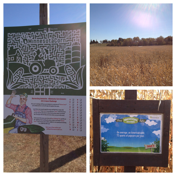 After the petting zoo we headed into the corn maze. set out with the best intentions to participate in the scavenger hunt. First off Joel could not resist picking the corn (which is against the rules), secondly there were a few bus loads of kids there and they were EVERYWHERE. However we did find a few of the letters. One of my favorites was about popcorn. I LOVE popcorn.