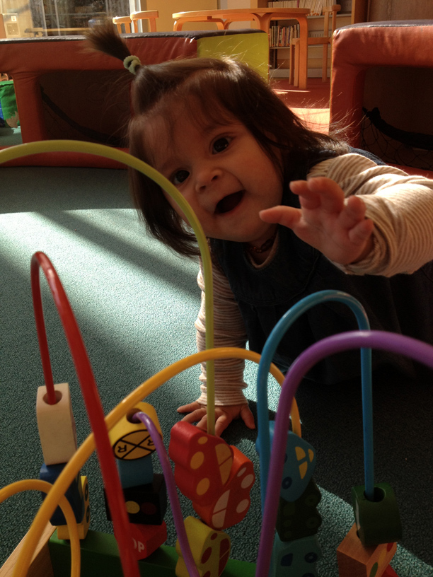 On this particular weekend they had a college group demonstrating some science experiments. Children could watch and participate in hands on activities. They even got to make bouncy balls! It was fun to observe the kids as they watched the experiments being preformed. I look forward to the day when Zoë can participate in these activities. After the experiments we headed over to the children’s section. They had a play area where Zoë was able to crawl around and explore. There foam blocks, mirrors, and toys. Zoë was naturally drawn to the mirror. She made us laugh as she would stare at herself and wave. We let her enjoy her play time as we took LOTS of pictures! Enjoy…