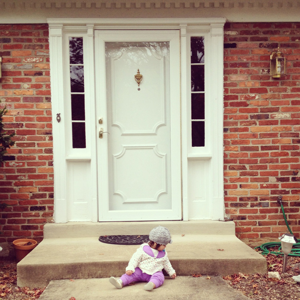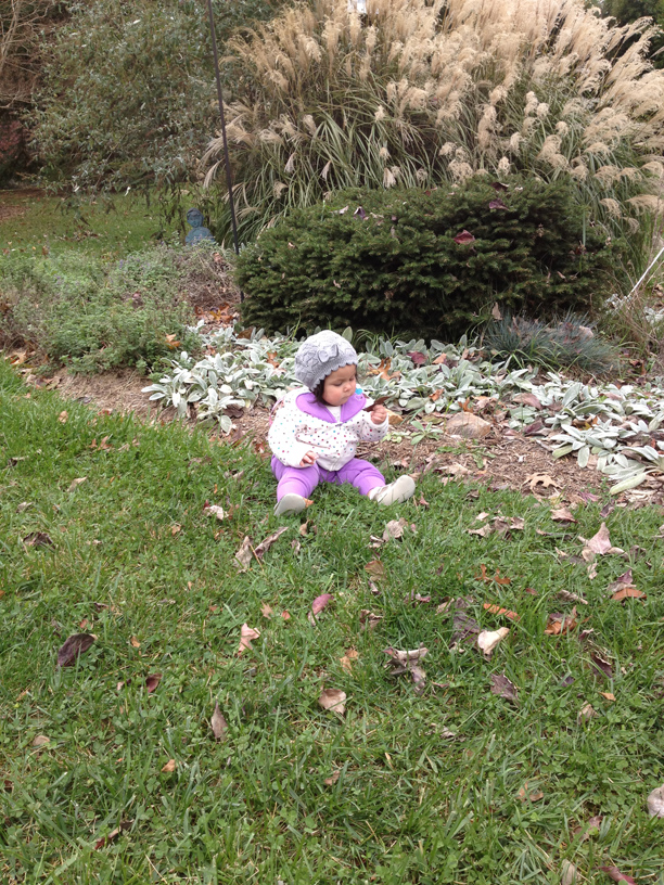 We took a tour outside. I really love my grandparents beautiful yard. One of my favorite past times was every morning we would watch for birds or deer. Still to this day I love seeing the birds flock to my grandma’s yard where she so generously provides plenty of bird seeds. Zoë however found the leaves to be far more fascinating! I love her curiosity for the world around her.