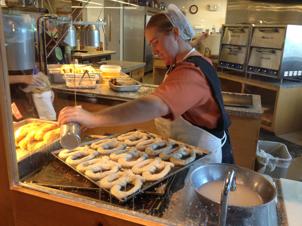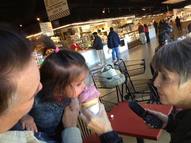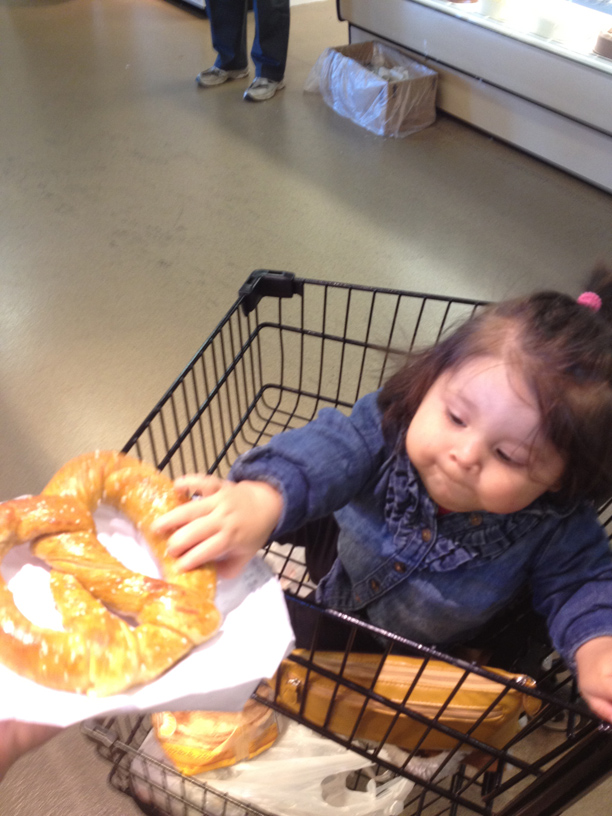 We couldn’t come to Maryland and not visit the Dutch Market. So off we went to the market! Everytime we flew in to Maryland we would stop at the Dutch Market for a pretzel. This time we decided to have lunch there as well and sample some of there treats. Zoë enjoyed a pickle at lunch and she chose YaYa’s ice cream as her treat. I picked up some strawberry licorice for Auntie Ashie and some beef jerky for Tommy. I couldn’t help my self and admire the assortment of goods the market offered! The smells that wafted from their baked goods and the pretzel counter was so delightful. It was so irresistible that I had to indulge in a pretzel before we headed back to the house.