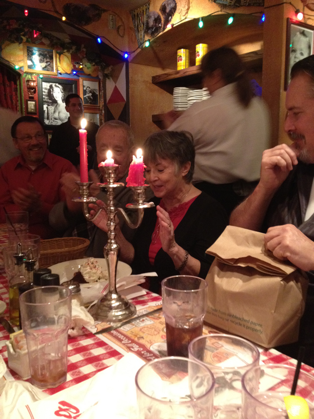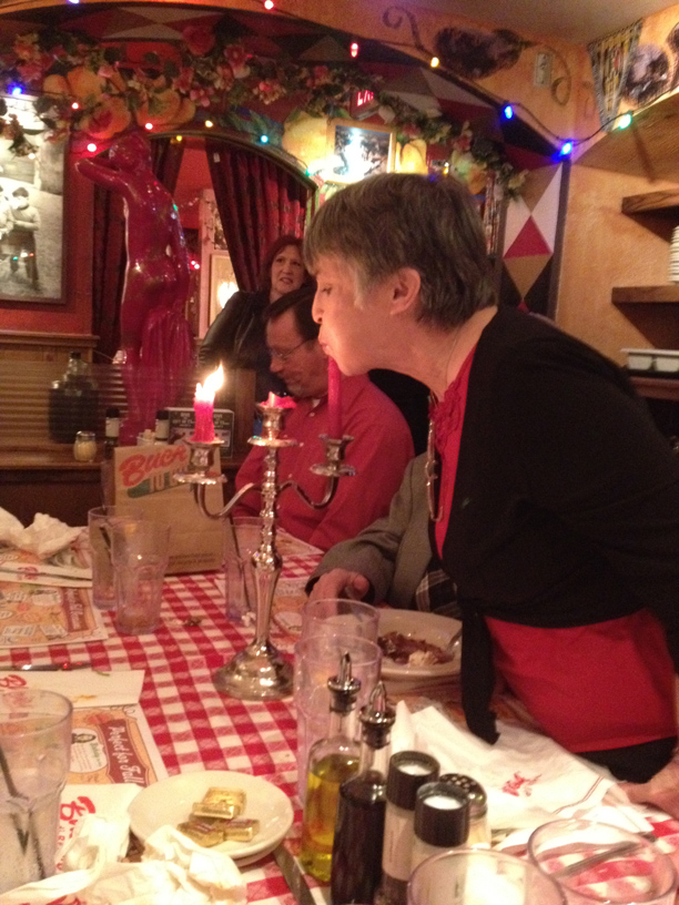 On Sunday we all got together at Bucca Di Beppo’s  to celebrate my grandma’s birthday. Zoë enjoyed her peppercioni and broccoli. The waiters sang the Bucca Di Bepp’s song…