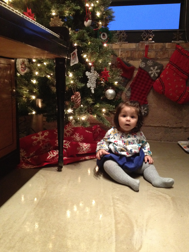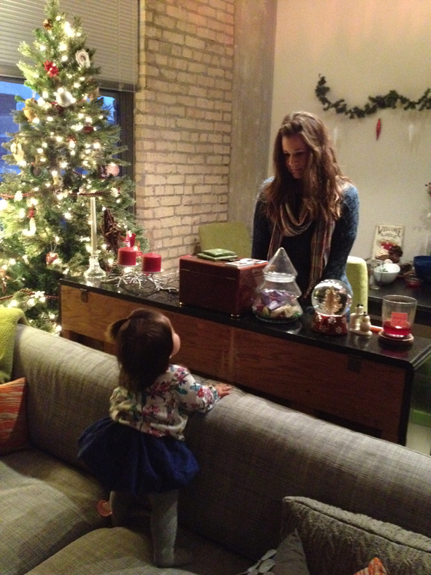 When we got home we made some cinnamon christmas ornaments. We didn’t get too fancy. I just formed a few by hand and then let Zoë make a hand print (sort of). I look forward to making these with Zoë each year since they are so simple and smell great!