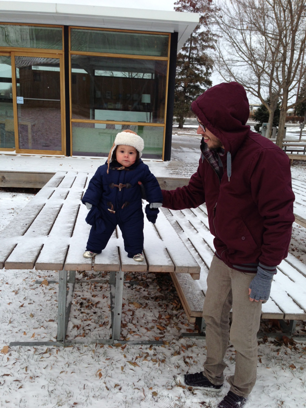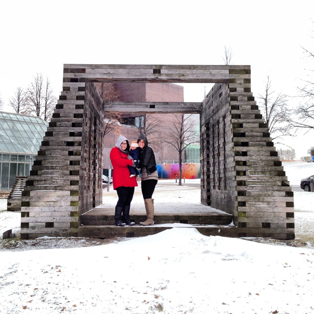 After breakfast we made a really quick stop at Sculpture park. It was so cold I ended up putting on Zoë’s snow suit. Poor girl couldn’t even move her arms or bend to sit up (totally reminds us of the kid from Christmas Story), but she was warm.