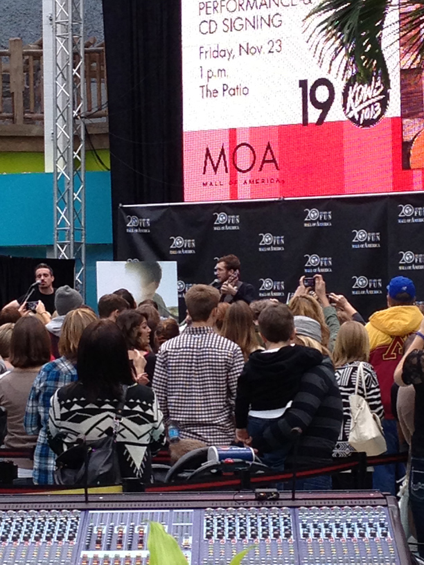 As we were leaving we cut through Nickelodeon World (where all of the roller coasters are) we heard a familiar song. It dawned on me that I had heard on the radio Phillip Phillips was going to be at the mall playing for a local radio station. Sure enough it was him!