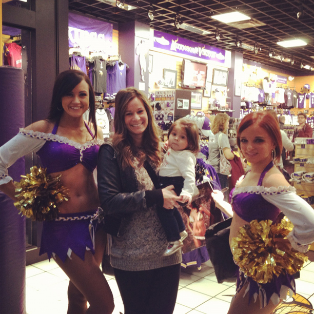We ran to the car and warmed up. Then we decided to head to the mall, I know crazy us black friday at the Mall of America, but we were just going to wander before Ashley’s flight. Parking was surprisingly easy and it wasn’t too bad of a crowd. We let Zoë play for a little bit at the Lego store. Then we met a few Viking cheerleaders.