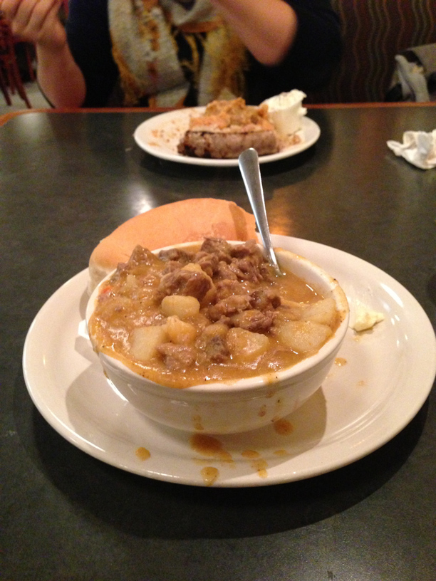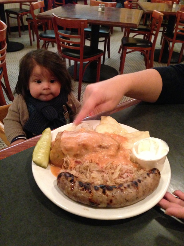 The next day we headed over to Kramarczuk’s for lunch. It is an Eastern European restaurant. I wanted Ashley to try something a little different, but we ended up just getting typical fare (chicken noodle soup and varenyky) I had originally heard about this place on Diners Drive Ins and Dives, triple D. Ashley finds it funny that I know all of these places to eat…I can’t help it I like food. Since I am such a foodie I am going to throw in a quick review of the this culinary adventure. The first time we ate here I tried the combination plate. It contained pretty much everything that was featured on the show. And let me tell you it was “money”! It had a cabbage roll with a tomato cream sauce, sausage and kraut, varenyky (meat and potato and cheese) and of course a pickle. Tommy tried the goulash with their homemade roll. It was a party in my tummy! It is definitely stick to your rib food, but it was very comforting on a cold night.