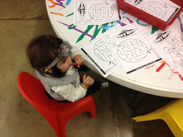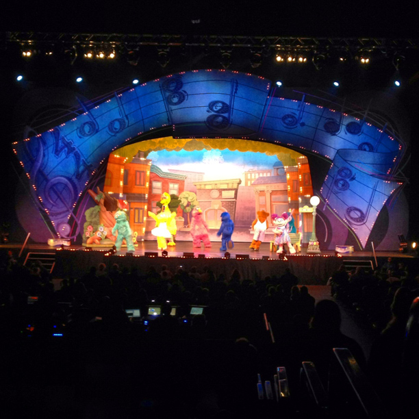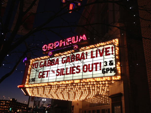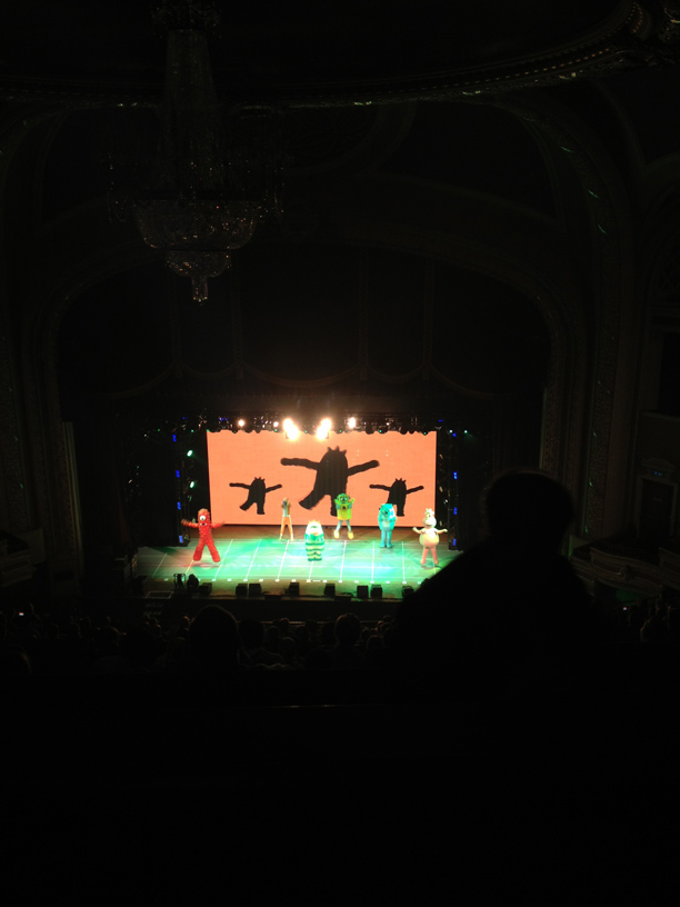 The other special event we got to attend was Yo Gabba Gabba live. Thankfully Tommy was able to join us and we got to enjoy the show as a family! We all met up at the Orpheum (for the concert going folk in California it is the equivalent of the Fox theatre in Pomona). They had a few activities lined up for the older kids. It was intense getting in so we just headed for our seats.