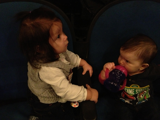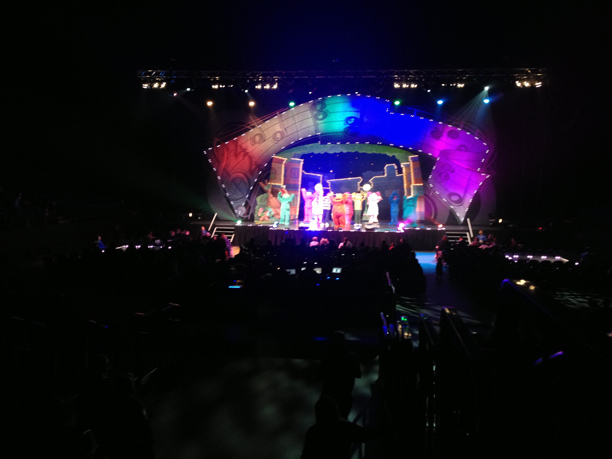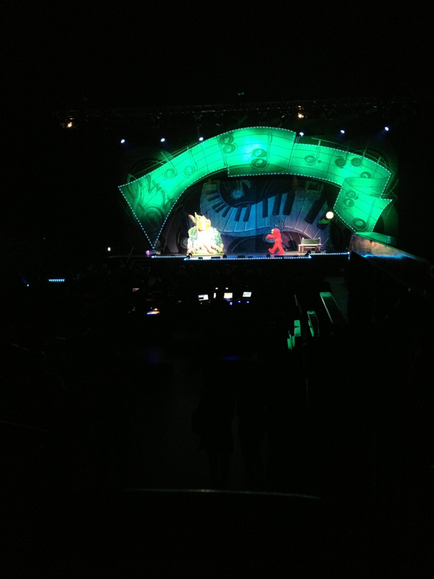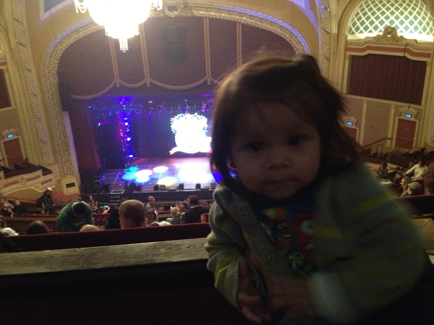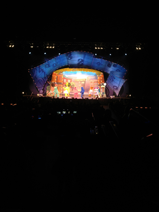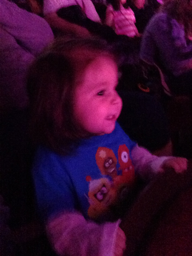 After we got our fill of fun we searched for our seats. When we purchased the tickets we were able to select our seats. We chose seats dead center and the closest you could get without paying for VIP seats! We had a great view and we were able to enjoy the show. Zoe was even able to stand up and dance! The family that sat next to us were very friendly. They even shared a glow stick with Zoe, which she was mesmerized by. During intermission their daughter and Zoe got the chance to get to know eachother. They were so cute together.