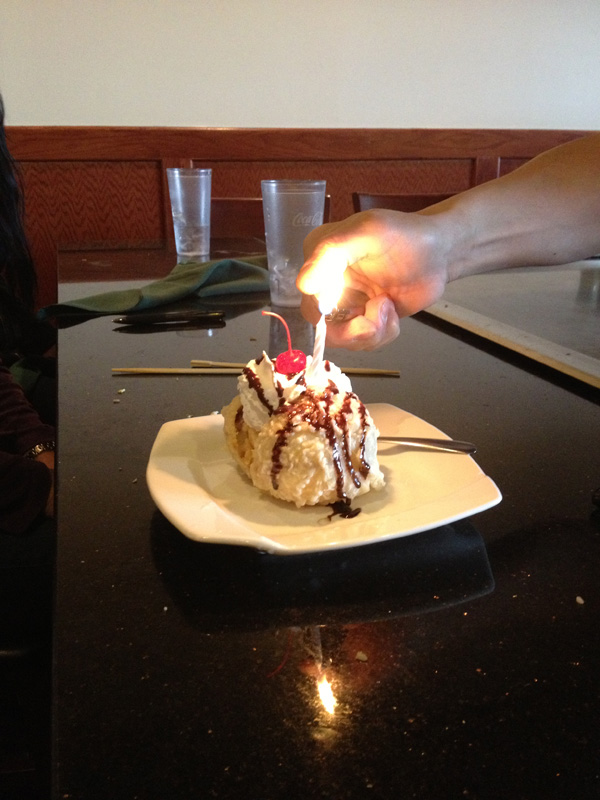 The next day we got up and enjoyed the morning. Auntie Marg had gotten Zoe a stash of Disney movies. Zoe chose to watch Mulan. That is one of our favorite Disney movies! It was so much fun to share it with Zoe. I was able to sneak a peek of her while she was enjoying the movie. After the movie we got ready and went outside for some fresh air. Something that I completely took for granted in California. Then we picked up grams for a lunch date at Hibachi to celebrate my birthday. It was so fun to be surrounded by the ladies of my family. I miss this moments a lot!