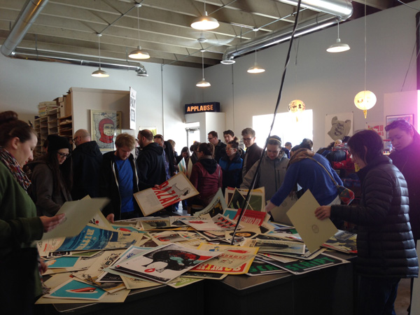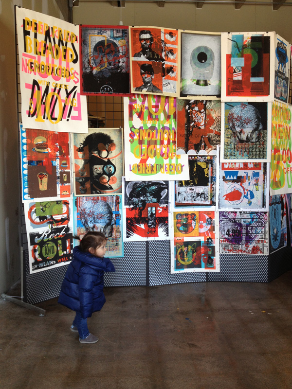 After we picked out all the posters we wanted we toured the shop. They had coffee and doughnuts. In another room they had a faux wall covered with posters. It is fun seeing other peoples shops. It seems like a fun environment to work in.