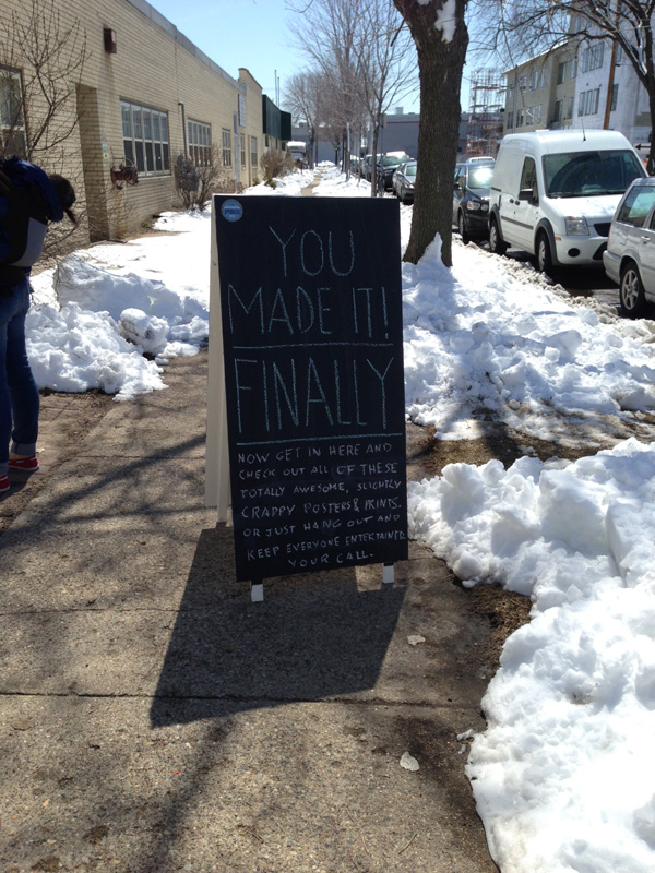 This is a shop that creates and prints posters. Tommy has developed this passion/obsession with posters. I will admit I have jumped on the bandwagon with him. There are posters hanging in pretty much every room of our apartments (except for the bathroom, but I think will fix that problem real soon). We couldn’t miss out on this great deal, $5 for posters that were just a little less than perfect! It was so much fun to scour the piles of posters to find the one you were looking for. Everyone was hovered over one big pile in the middle of the room. It was a bit crowded so moving around was a little difficult, especially since I had Zoe strapped to my back. We slowly made our way over to the big table filled with LOTS of posters. I had spotted a poster I wanted. It was the state of Minnesota riding a bike. I had my heart set on it. There were two left on top of the pile. I went to reach for it as someone lifted the poster underneath it and the slid out of my reach. Thankfully the girl in front of me had longer arms and reached out for the poster for me, unfortunately someone else was trying to grab the same poster. Needless to say the girl grabbing the poster for me made sure I got it!