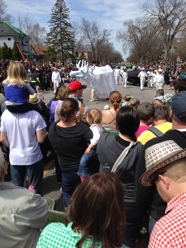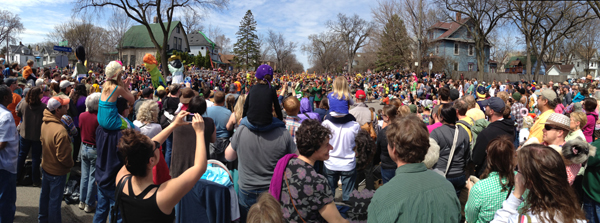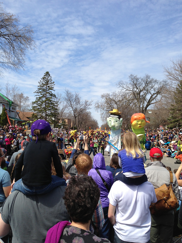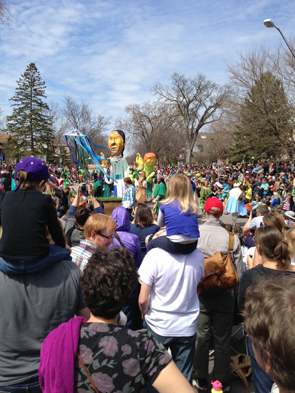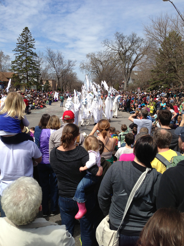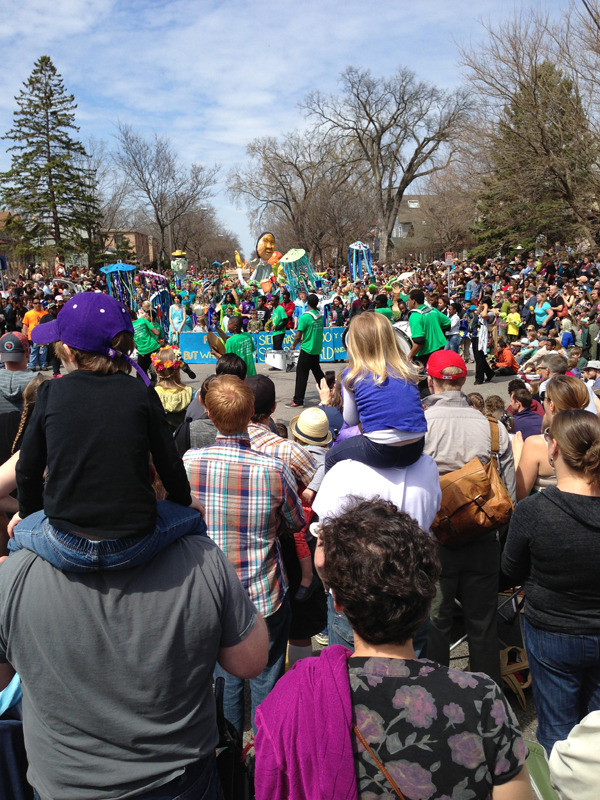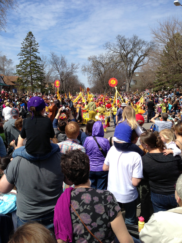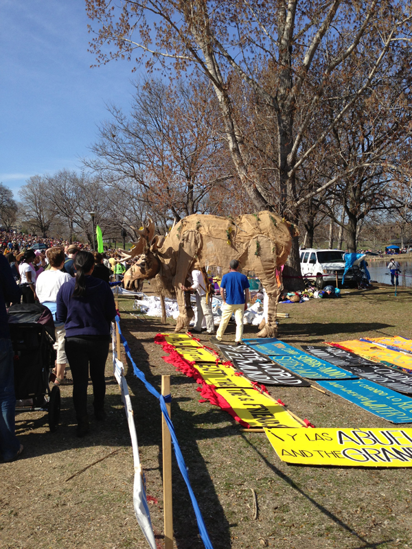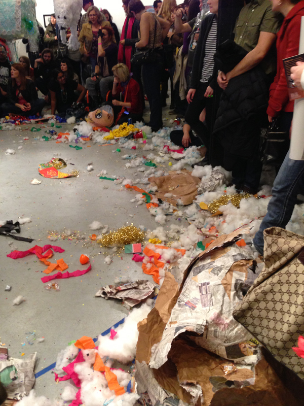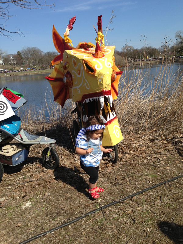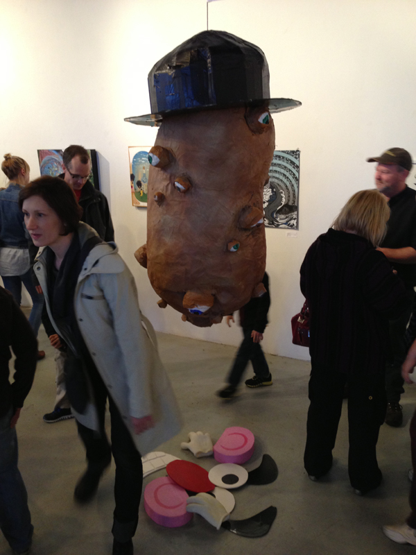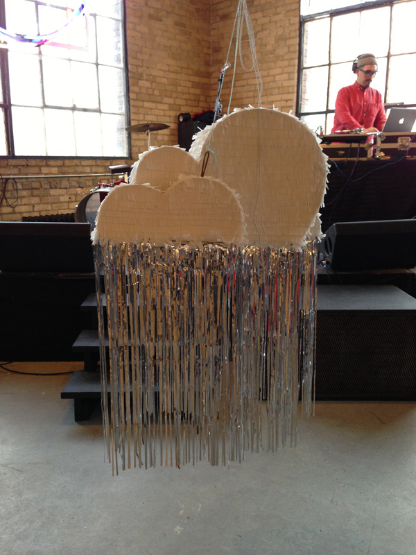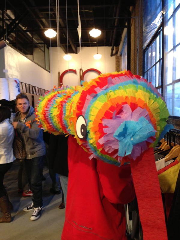 Tommy participated in a pinata exhibition. Participates paid a dollar for 30 seconds to hit a pinata. There were several creative pinatas and it was very exciting to see what they were filled with.